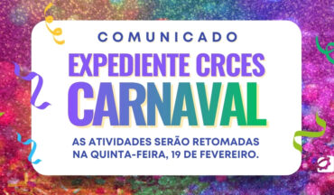 Em virtude do Carnaval, o CRCES informa que não haverá expediente administrativo nos dias 16, 17 e 18 de fevereiro.